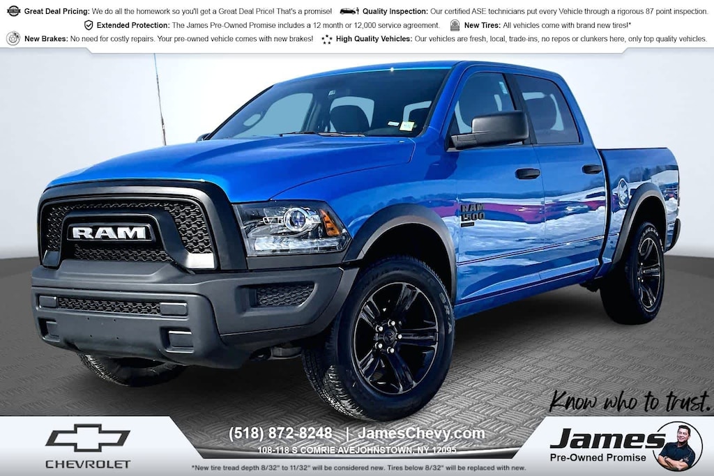 4x4, Back-Up Camera, Satellite Radio, iPod/MP3 Input, Bluetooth® Ram Warlock with Hydro Blue Pearlcoat exterior and Black interior features a V6 Cylinder Engine with 305 HP at 6400 RPM*.
